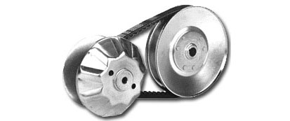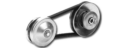 The model 30 uses a 3/4" top width belt. The belt mass in No. 30 is desirable in applications requiring extra rugged driving ability, such as dune buggies, go-karts, mini bikes, ATV's, grounds maintenance equipment, materials handling devices and industrial equipment. The Model 30 series is mounted with both stationary sheaves inboard. Mounting can be on a flat, fixed plane, requiring only minimum displacement.